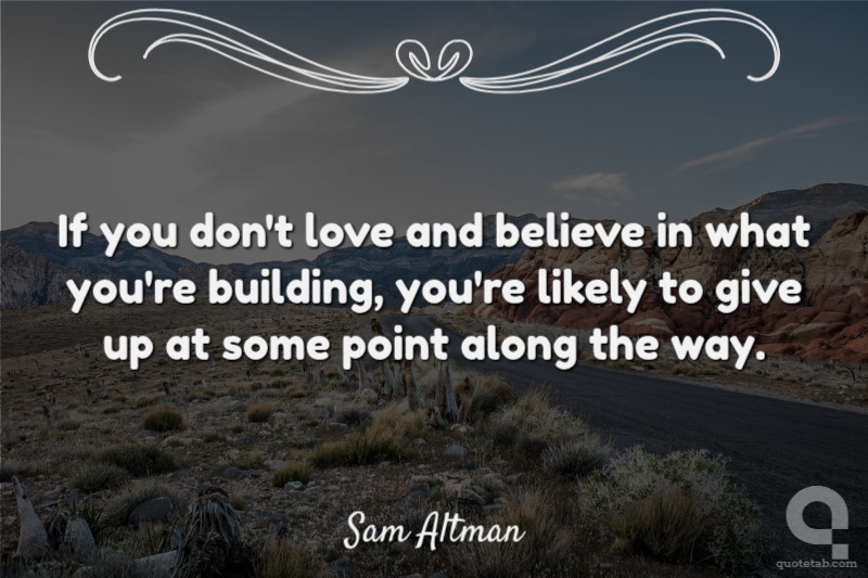 If you don't love and believe in what you're building, you're likely to give up at some point along the way.