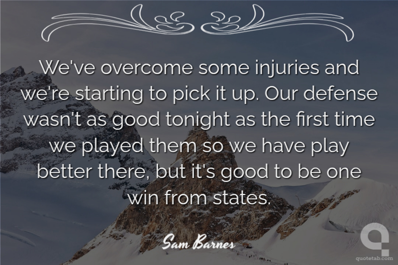 We've overcome some injuries and we're starting to pick it up. Our defense wasn't as good tonight as the first time we played them so we have play better there, but it's good to be one win from states.