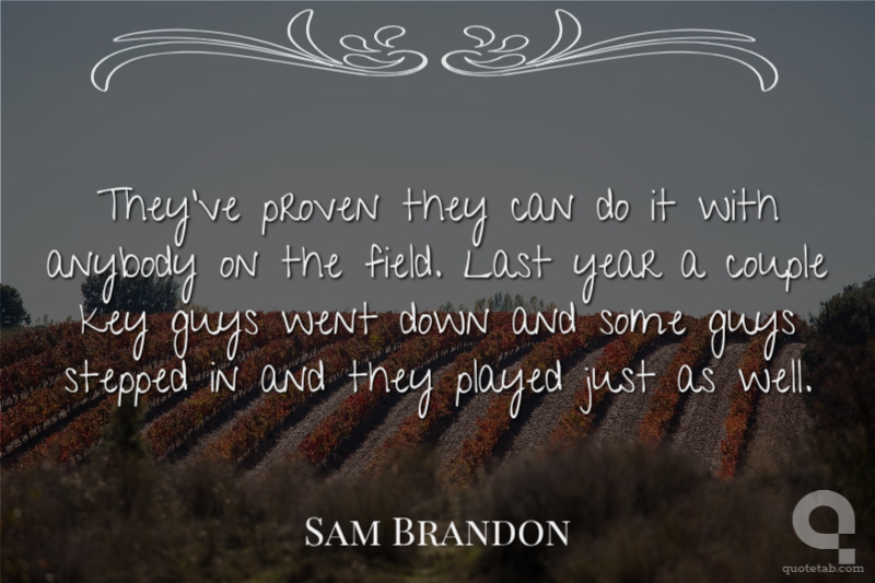 They've proven they can do it with anybody on the field. Last year a couple key guys went down and some guys stepped in and they played just as well.
