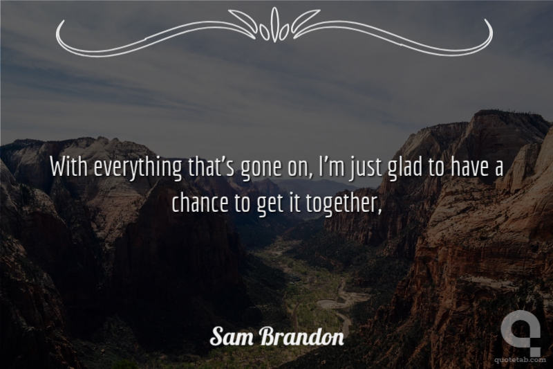 With everything that's gone on, I'm just glad to have a chance to get it together,