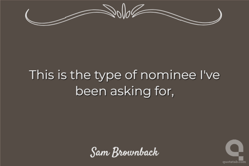 This is the type of nominee I've been asking for,