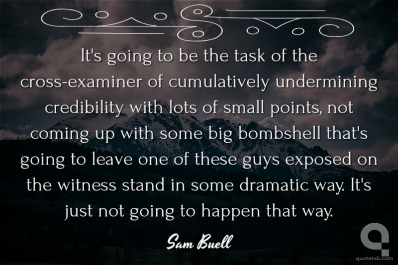 It's going to be the task of the cross-examiner of cumulatively undermining credibility with lots of small points, not coming up with some big bombshell that's going to leave one of these guys exposed on the witness stand in some dramatic way. It's just not going to happen that way.
