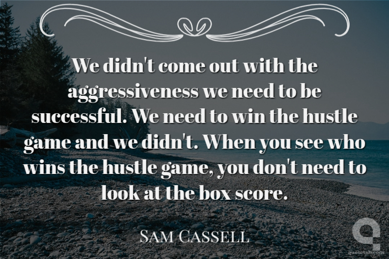 We didn't come out with the aggressiveness we need to be successful. We need to win the hustle game and we didn't. When you see who wins the hustle game, you don't need to look at the box score.