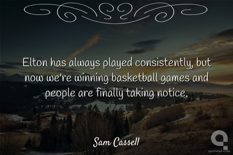 Elton has always played consistently, but now we're winning basketball games and people are finally taking notice.
