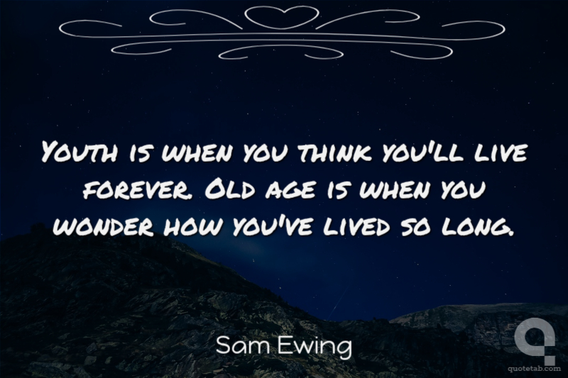 Youth is when you think you'll live forever. Old age is when you wonder how you've lived so long.