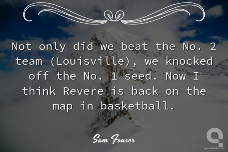 Not only did we beat the No. 2 team (Louisville), we knocked off the No. 1 seed. Now I think Revere is back on the map in basketball.