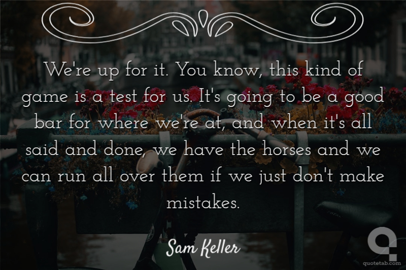 We're up for it. You know, this kind of game is a test for us. It's going to be a good bar for where we're at, and when it's all said and done, we have the horses and we can run all over them if we just don't make mistakes.