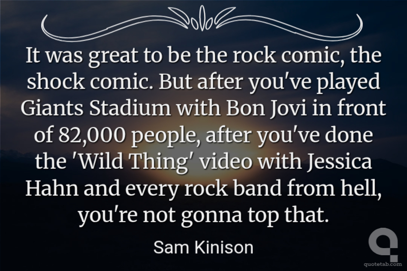 It was great to be the rock comic, the shock comic. But after you've played Giants Stadium with Bon Jovi in front of 82,000 people, after you've done the 'Wild Thing' video with Jessica Hahn and every rock band from hell, you're not gonna top that.