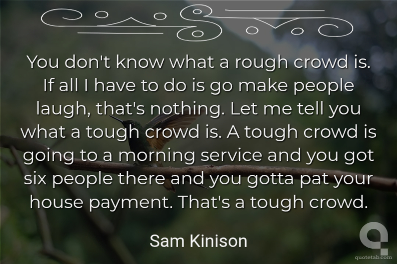 You don't know what a rough crowd is. If all I have to do is go make people laugh, that's nothing. Let me tell you what a tough crowd is. A tough crowd is going to a morning service and you got six people there and you gotta pat your house payment. That's a tough crowd.