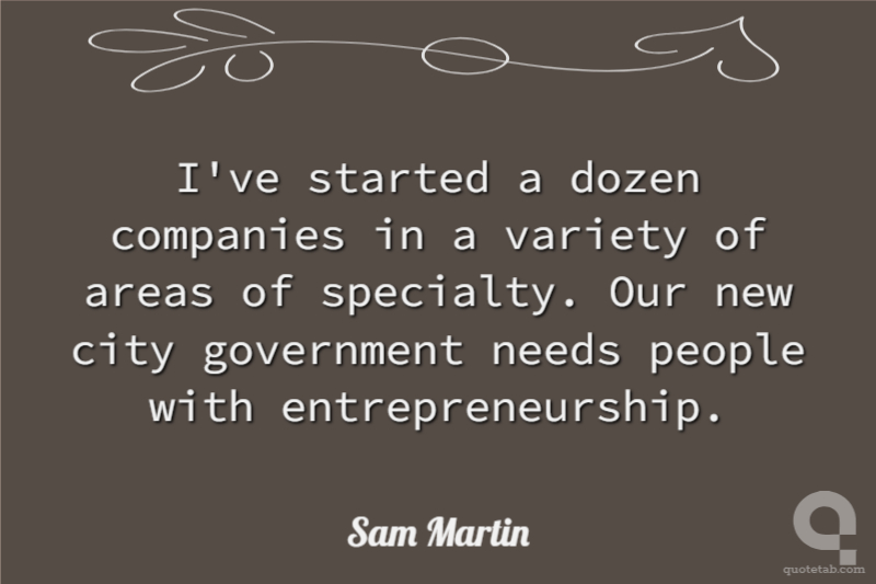 I've started a dozen companies in a variety of areas of specialty. Our new city government needs people with entrepreneurship.
