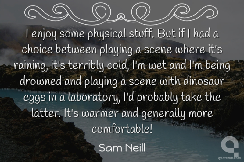 I enjoy some physical stuff. But if I had a choice between playing a scene where it's raining, it's terribly cold, I'm wet and I'm being drowned and playing a scene with dinosaur eggs in a laboratory, I'd probably take the latter. It's warmer and generally more comfortable!