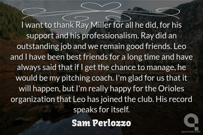 I want to thank Ray Miller for all he did, for his support and his professionalism. Ray did an outstanding job and we remain good friends. Leo and I have been best friends for a long time and have always said that if I get the chance to manage, he would be my pitching coach. I'm glad for us that it will happen, but I'm really happy for the Orioles organization that Leo has joined the club. His record speaks for itself.