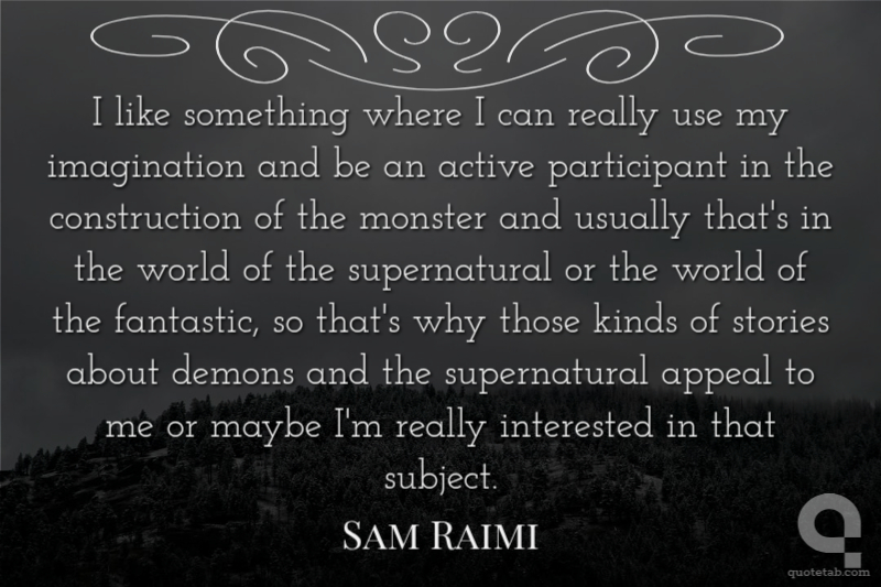 I like something where I can really use my imagination and be an active participant in the construction of the monster and usually that's in the world of the supernatural or the world of the fantastic, so that's why those kinds of stories about demons and the supernatural appeal to me or maybe I'm really interested in that subject.