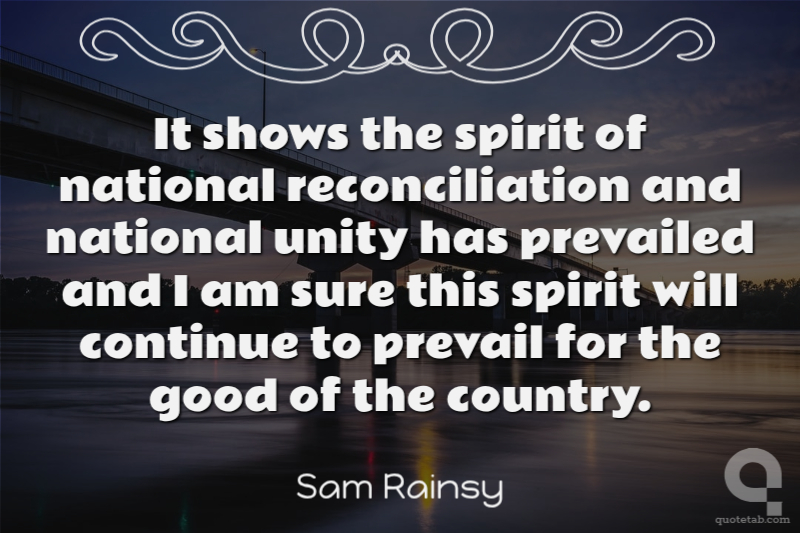 It shows the spirit of national reconciliation and national unity has prevailed and I am sure this spirit will continue to prevail for the good of the country.