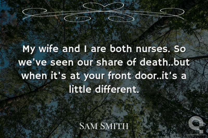 My wife and I are both nurses. So we've seen our share of death..but when it's at your front door..it's a little different.