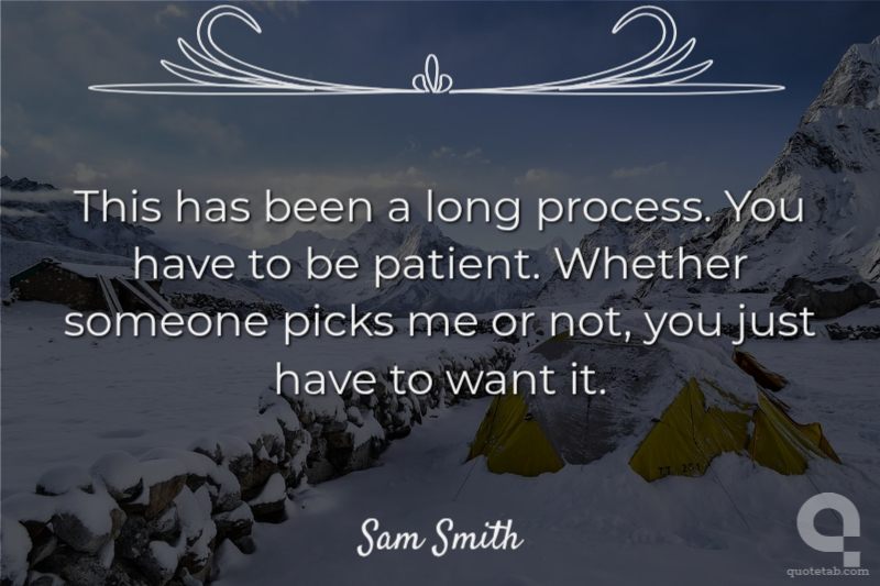 This has been a long process. You have to be patient. Whether someone picks me or not, you just have to want it.