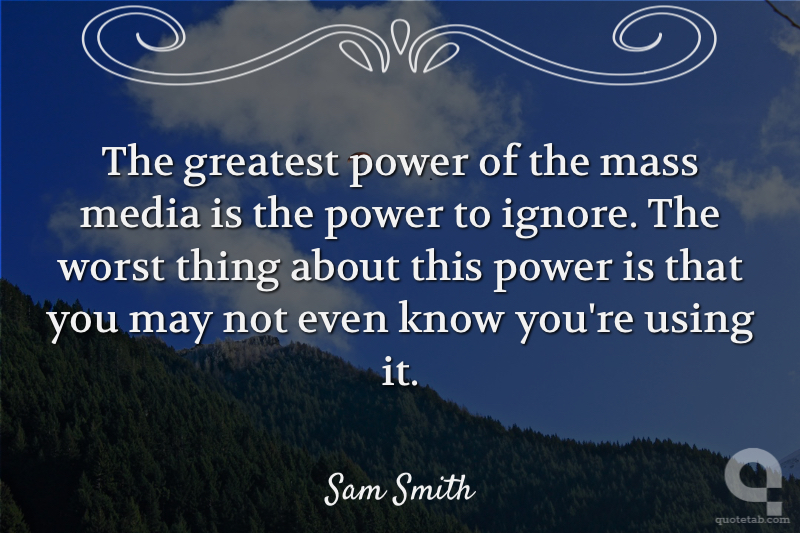 The greatest power of the mass media is the power to ignore. The worst thing about this power is that you may not even know you're using it.