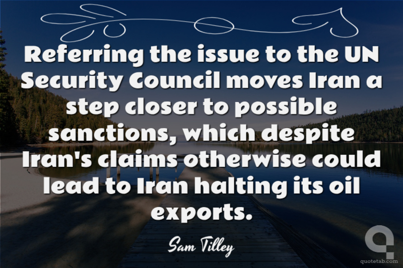 Referring the issue to the UN Security Council moves Iran a step closer to possible sanctions, which despite Iran's claims otherwise could lead to Iran halting its oil exports.