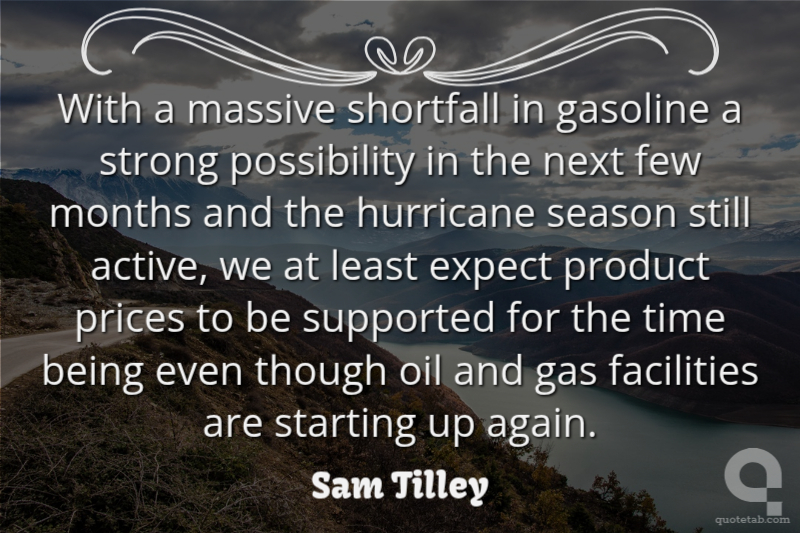 expect facilities few gasoline hurricane massive months next oil prices product season starting strong supported though time