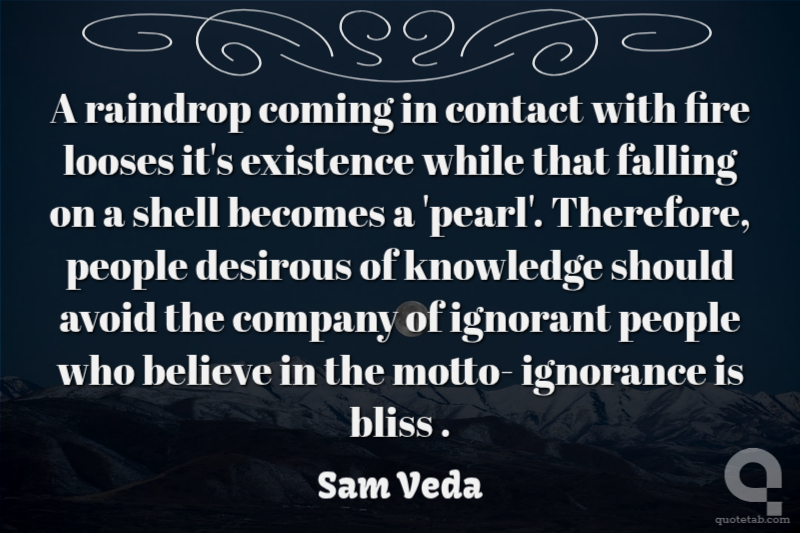 A raindrop coming in contact with fire looses it's existence while that falling on a shell becomes a 'pearl'. Therefore, people desirous of knowledge should avoid the company of ignorant people who believe in the motto- ignorance is bliss .