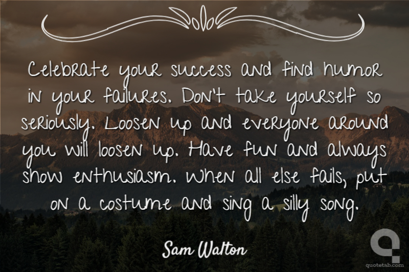 Celebrate your success and find humor in your failures. Dont take yourself so seriously. Loosen up and everyone around you will loosen up. Have fun and always show enthusiasm. When all else fails, put on a costume and sing a silly song.