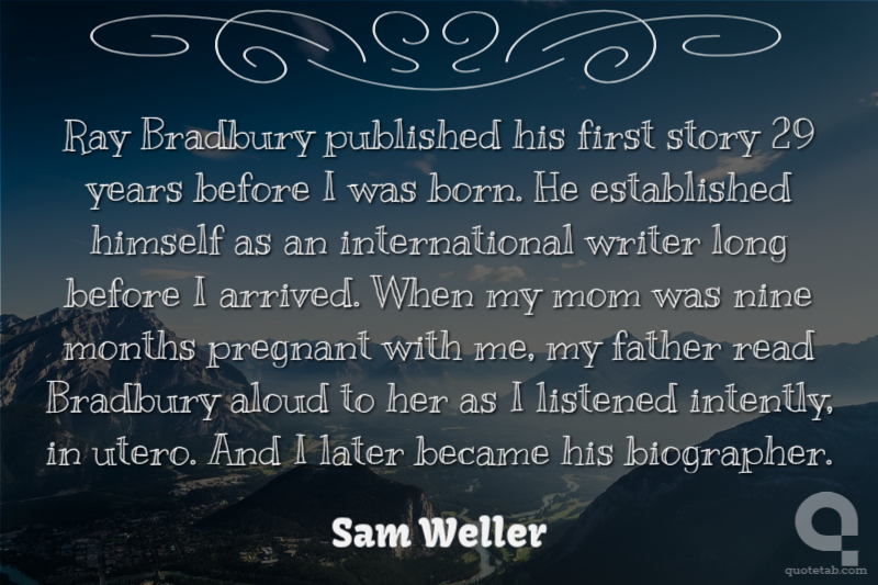 Sam Welleris an American journalist and author, best known for being writer Ray Bradbury's authorized biographer. Weller's 2005 book, The Bradbury Chronicles: The Life of Ray Bradburyis a full-biography while his 2010 Listen to the Echoes, The Ray Bradbury Interviewsis a collection of interviews, photos, mementos, and artifacts. Weller's 2014 Ray Bradbury: The Last Interview: And Other Conversationsfeatures his last interview with Bradbury, and recounts Bradbury's influences, creative processes, and love for writing and reading...