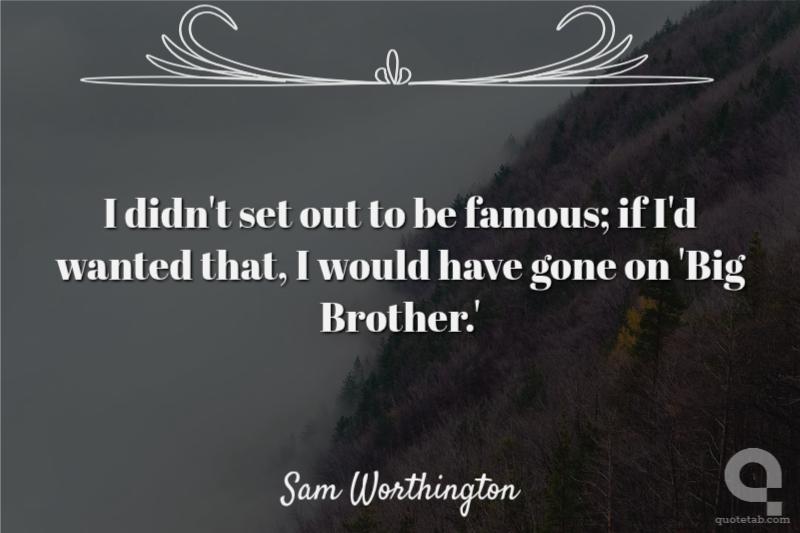 I didn't set out to be famous; if I'd wanted that, I would have gone on 'Big Brother.'