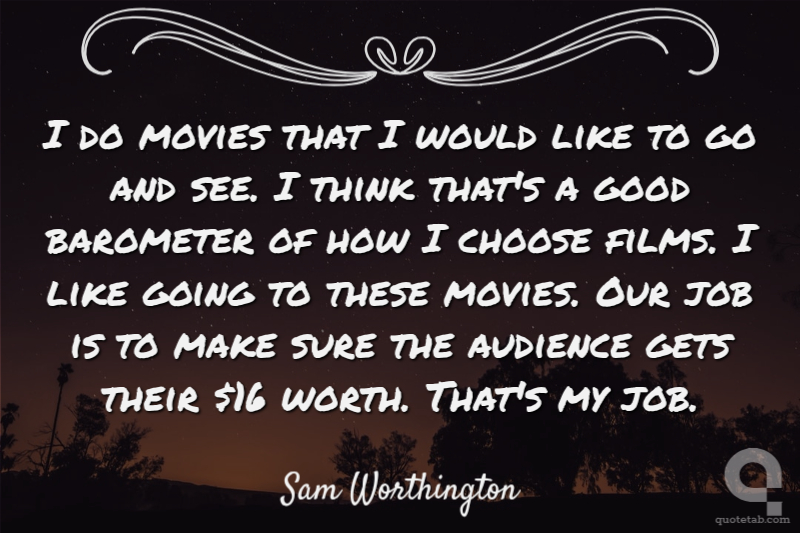 I do movies that I would like to go and see. I think that's a good barometer of how I choose films. I like going to these movies. Our job is to make sure the audience gets their $16 worth. That's my job.