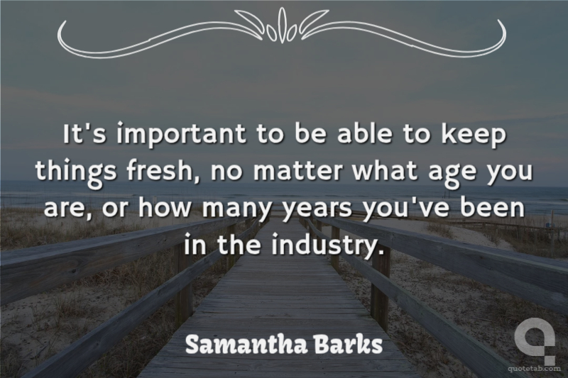 It's important to be able to keep things fresh, no matter what age you are, or how many years you've been in the industry.