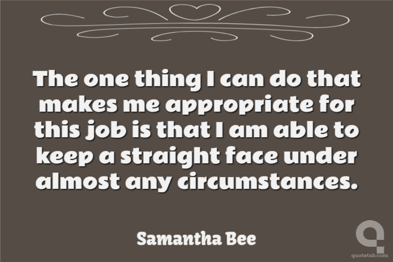 The one thing I can do that makes me appropriate for this job is that I am able to keep a straight face under almost any circumstances.