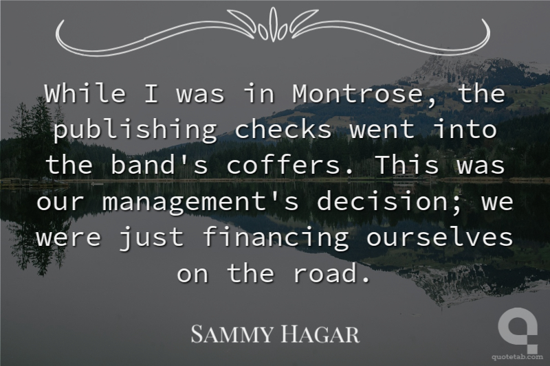 While I was in Montrose, the publishing checks went into the band's coffers. This was our management's decision; we were just financing ourselves on the road.