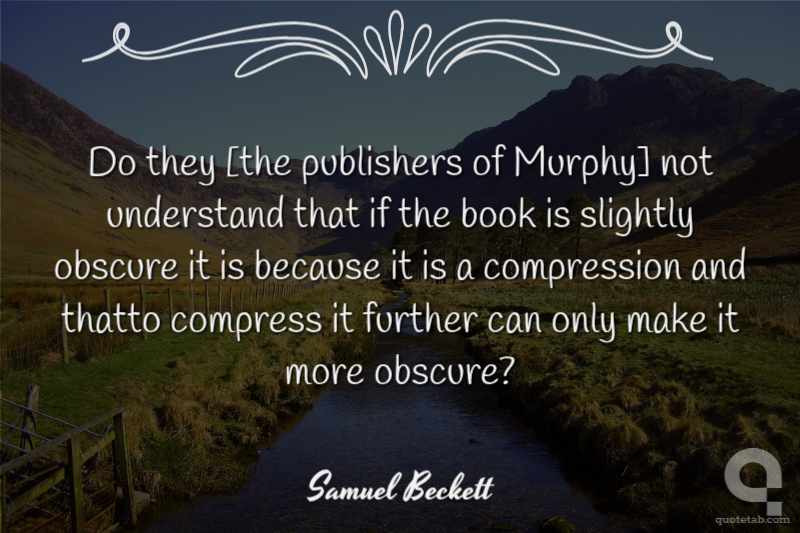 Do they [the publishers of Murphy] not understand that if the book is slightly obscure it is because it is a compression and thatto compress it further can only make it more obscure?