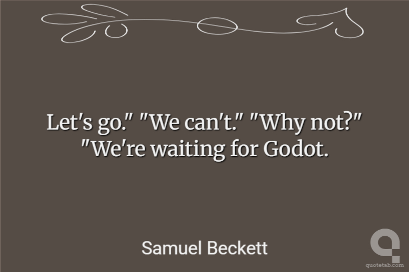 Let's go." "We can't." "Why not?" "We're waiting for Godot.