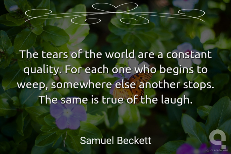 The tears of the world are a constant quality. For each one who begins to weep, somewhere else another stops. The same is true of the laugh.