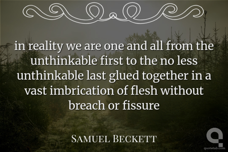 in reality we are one and all from the unthinkable first to the no less unthinkable last glued together in a vast imbrication of flesh without breach or fissure