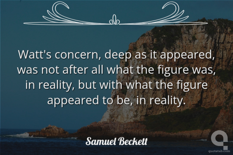 Watt's concern, deep as it appeared, was not after all what the figure was, in reality, but with what the figure appeared to be, in reality.