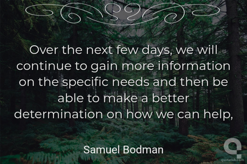Over the next few days, we will continue to gain more information on the specific needs and then be able to make a better determination on how we can help,