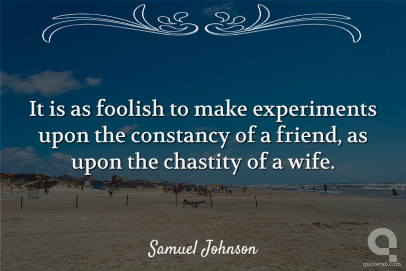 It is as foolish to make experiments upon the constancy of a friend, as upon the chastity of a wife.