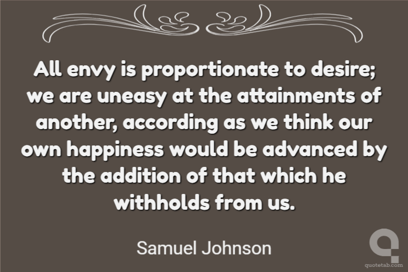 All envy is proportionate to desire; we are uneasy at the attainments of another, according as we think our own happiness would be advanced by the addition of that which he withholds from us.
