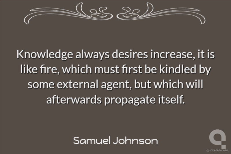 Knowledge always desires increase, it is like fire, which must first be kindled by some external agent, but which will afterwards propagate itself.