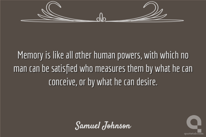 Memory is like all other human powers, with which no man can be satisfied who measures them by what he can conceive, or by what he can desire.