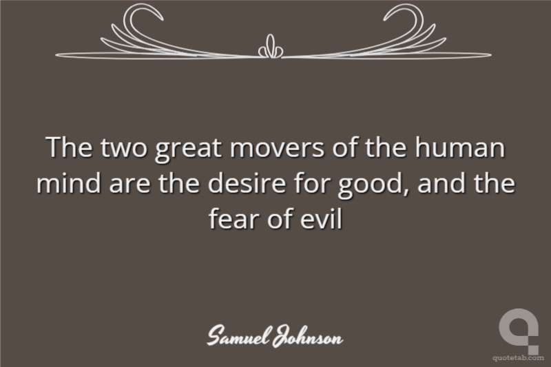 The two great movers of the human mind are the desire for good, and the fear of evil