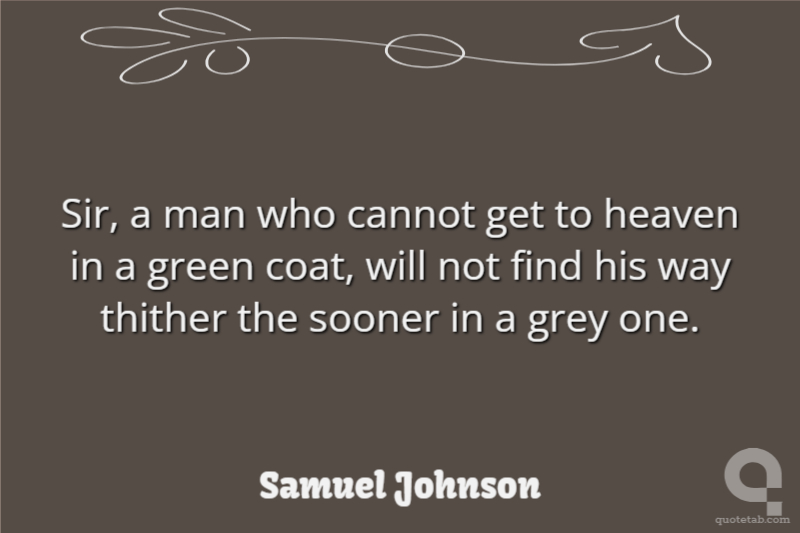 Sir, a man who cannot get to heaven in a green coat, will not find his way thither the sooner in a grey one.