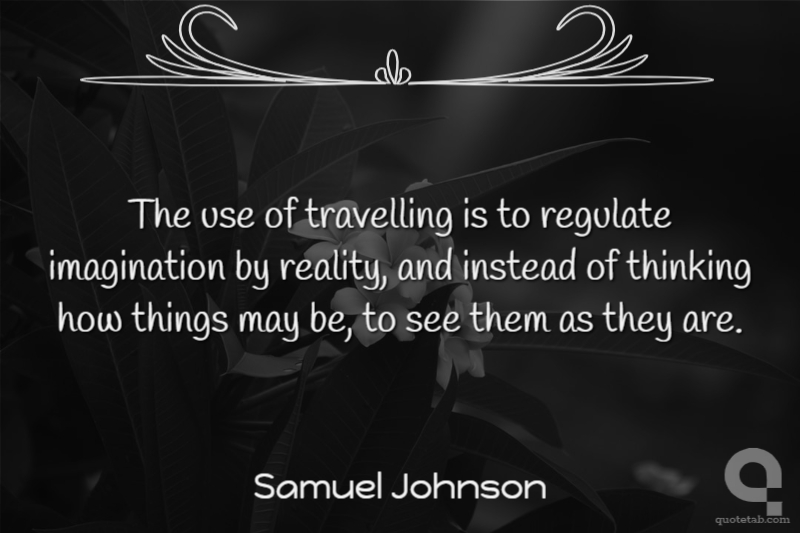 The use of travelling is to regulate imagination by reality, and instead of thinking how things may be, to see them as they are.