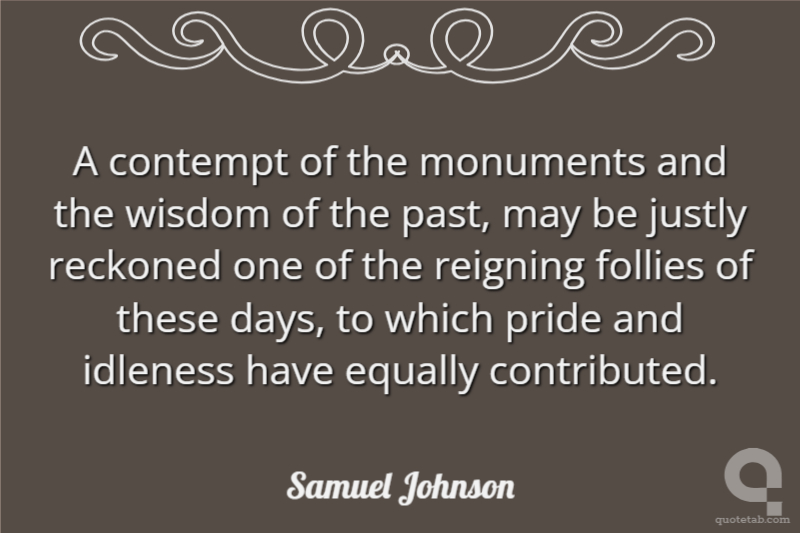 A contempt of the monuments and the wisdom of the past, may be justly reckoned one of the reigning follies of these days, to which pride and idleness have equally contributed.