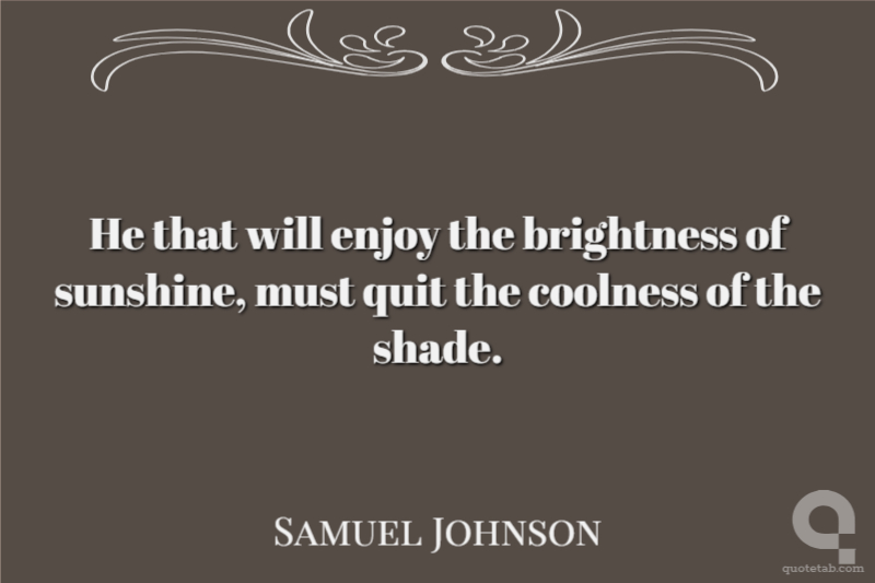 He that will enjoy the brightness of sunshine, must quit the coolness of the shade.