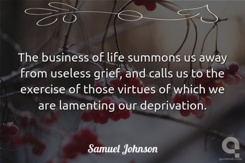 The business of life summons us away from useless grief, and calls us to the exercise of those virtues of which we are lamenting our deprivation.