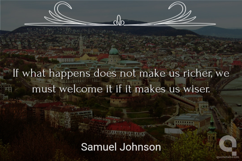 If what happens does not make us richer, we must welcome it if it makes us wiser.