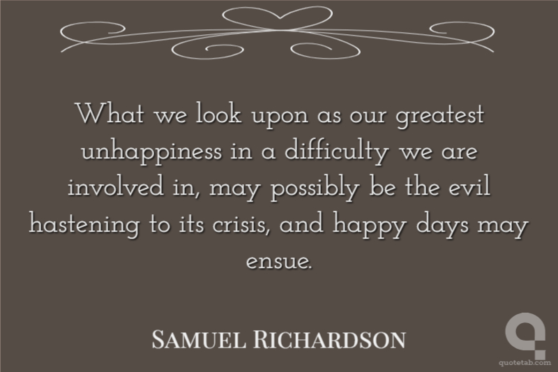 What we look upon as our greatest unhappiness in a difficulty we are involved in, may possibly be the evil hastening to its crisis, and happy days may ensue.