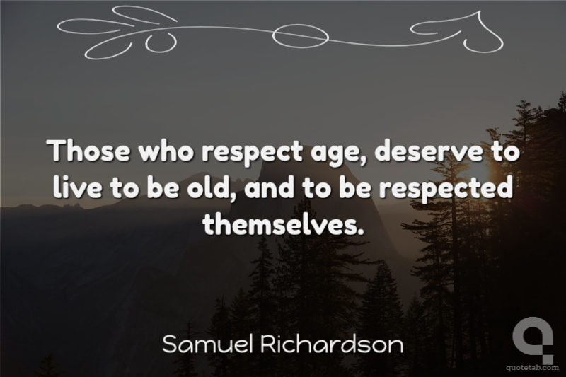Those who respect age, deserve to live to be old, and to be respected themselves.